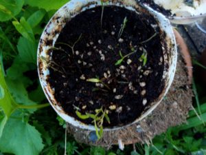 今日の仕事: 茄子を独立。ミニトマトを独立。茄子のボトルにはナメクジが2匹も入っていました。プラスチックは彼等にとって上り易いんですね。