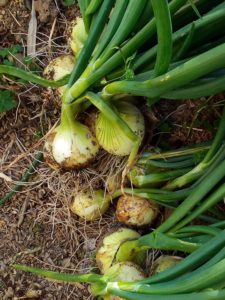 今日はAさんがいらしているから西隣さんの写真はありません。極早生玉葱を収穫しました。苗で買ったものも、種から育てたものも時期が来ると首元からガクン、と葉を折りますので、収穫時期は分かります。2-3日葉玉葱を毎食食べる事になりそうです(笑)。