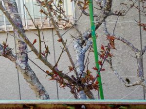 我が家の実梅にシュートが出て来ました。今年からは垂直枝で数年かけて実らせていきます。5枚目は鹿児島紅の新芽が遅く出て来た枝です。