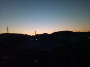 4時前に雨戸を開けたら浅間様の山の上にあけの明星が輝いていました。今日はそんな低い位置まで星々が見えます。