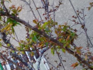 我が家の実梅にシュートが出て来ました。今年からは垂直枝で数年かけて実らせていきます。5枚目は鹿児島紅の新芽が遅く出て来た枝です。