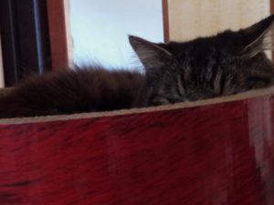 うめは福がいると、廊下で待機してカリカリを待ちますが、私やトラ子だけだとご飯の場所で食べます。『誰かさんが居ない時は自由よ。』それに私が起きた時に爪とぎをガリガリとやるのも、新入りの仕事ですが、うめが居ない時にはトラ子が担当しています(笑)。福が爪研ぎを担当する事はありません。