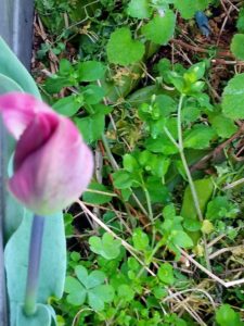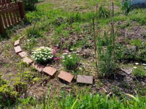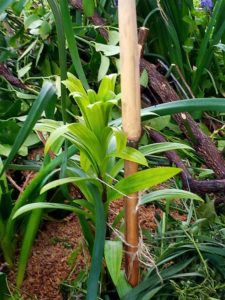 6時から2時間の庭仕事です。朝から結構風が”やや強い”状態です。主な仕事は脇の通路のキャベツの点検と蚕豆の結び直しでした。後は10㎝以上になったジャガイモの初結びでした。