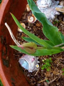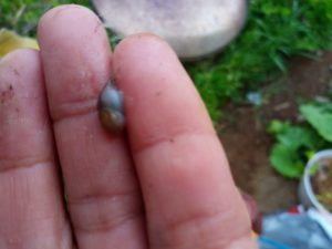 中: 調べて見たら、丸い食害跡…これはナメクジですね。ほら、居ました。結構数が居た筈ですよ。4匹くらい退治しました。