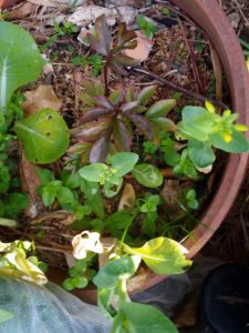 中: ホウレンソウに種が実って居ます。