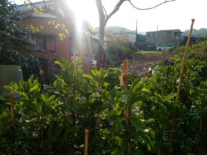 蚕豆は120㎝は軽く超えました。右は柿の木下の蚕豆。未だ処理していません。明日かなぁ。台風前に処理して置かないと。