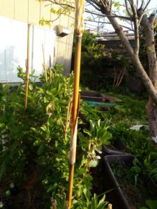 左は南側のプランター。縛ってあります。