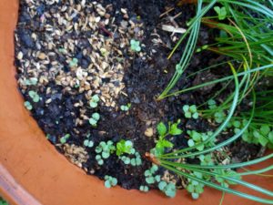 庭には小さな紫蘇が沢山現れています。鉢の中にも、通路にも、畝上にも!勿論、生長するまで大分淘汰されてしまいますが、元気に発芽する紫蘇の姿は嬉しいものです。