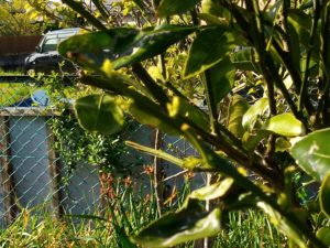 右: 温州さんの新芽。我が家の夏蜜柑にも沢山の新芽が出て来ました。