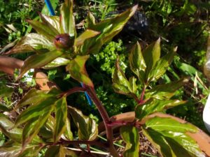 芍薬です。小さい芽からスマホを伸ばした手がぶつかる程生長しているもの等、個性豊かです。さて、今年は誰が一番乗りで花を咲かせるのでしょう?明日は竜馬生姜を土に植えて有機物でマルチングをして置きましょう。