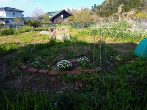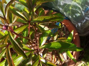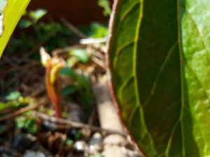 芍薬です。小さい芽からスマホを伸ばした手がぶつかる程生長しているもの等、個性豊かです。さて、今年は誰が一番乗りで花を咲かせるのでしょう?明日は竜馬生姜を土に植えて有機物でマルチングをして置きましょう。