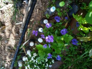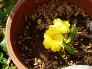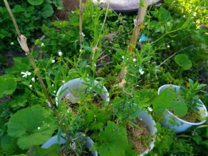 右: ここに植えたジャガイモが発芽して来ました。