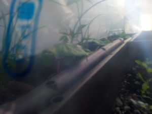 中: 物干し下のトンネルで育つ紅花インゲン。
