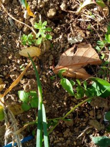 左: アサツキの球根でしょうか?先日、Aさんに許可を頂いて貰い受けました。活着した様です。