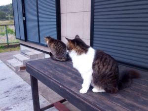 二猫は食べ終わると表へ出かけて行きました。トラ子はお隣の物置で昼寝かな?さっき物置の屋根から『あれっ、オカアシャン何してるの?』、と聞いて来ました。5時前、うめが帰って来て『カリカリを下さい。』、と言うので、黒っぽいピュリナのカリカリを食べさせたら、ゴロゴロ…言いながら食べていました。まぁ、慣れたら言わなくなるのでしょうけれど。先ずは氣に入って呉れて良かった。