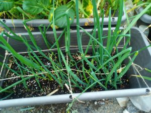 左: 落ちこぼれさんだけを集めた汐留長葱のプランターも時間を掛ければこの通り。中: 見えないですけれど、ピッコロ人参と赤紫蘇の芽がでています。