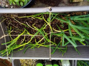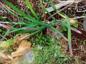 中: 韮にアントシアニンが出ていました。先日の寒波?それとも台風の時の北風?