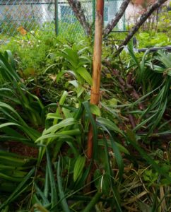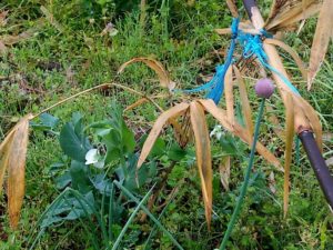 右: 1-2畝間の通路が大根に支柱を立てて縛りました。良い種を付けて呉れよ!すっきりしました。