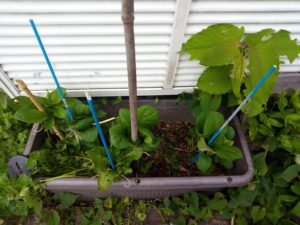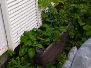 中: 東のプランターのジャガイモを縛り上げました。