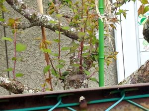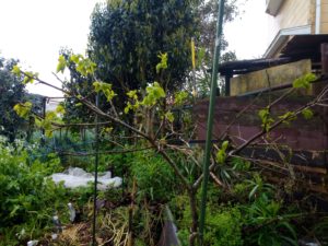 右: オリーブの木に新芽が出た、という事は新根が出たという事です。GWにいらした時にはもう一回り大きい鉢に移して、場所を色々と検討して下さいね。取り敢えず180-200㎝を考えて下さい。実際はもっと大きくなります。朝倉彫塑館に確か毎年実のなる木があった、と思います。