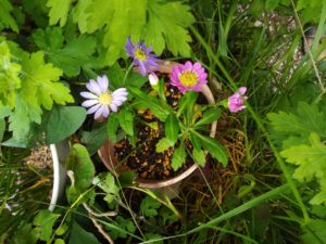 左: 紅花インゲンを差し上げたお礼にとYさんがミヤコワスレを下さいました。母が大好きな花でした。