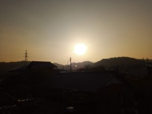 少し暗かったですが、今朝は4時半、日の出30分前から太陽の光で空が明るくなりました。