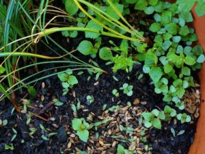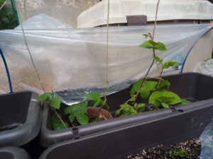中&右: 今朝も一つ発芽した南瓜。合計5株。不織布を掛けて置きましょう。