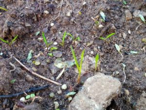 右: 茄子の発芽は中々変わらない…露地だし、地温が上がらないから仕方が無い。ゆっくりで良いよ。健康に育って。