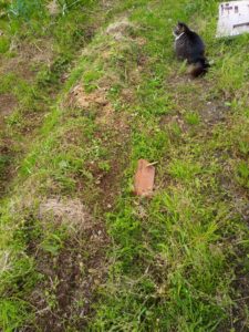 福以外は外出し、暫くして帰って来たうめの背中が結構濡れていました。雨は降っていませんが、恐らく梅の体高位の草が雫を付けているのでしょう。