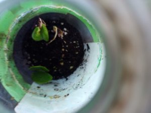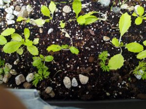 下段: ミニトマト。winter-sowingボトルからそろそろ出さないとね。