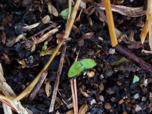 中&右: 今朝も一つ発芽した南瓜。合計5株。不織布を掛けて置きましょう。