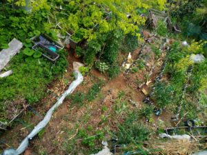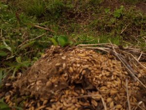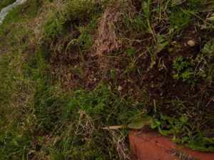 通路が刈草で緑色になったから、今日はこれで終了。夜は雨ですよね。金曜日に乾かして一か月以上してから畝に上げます。