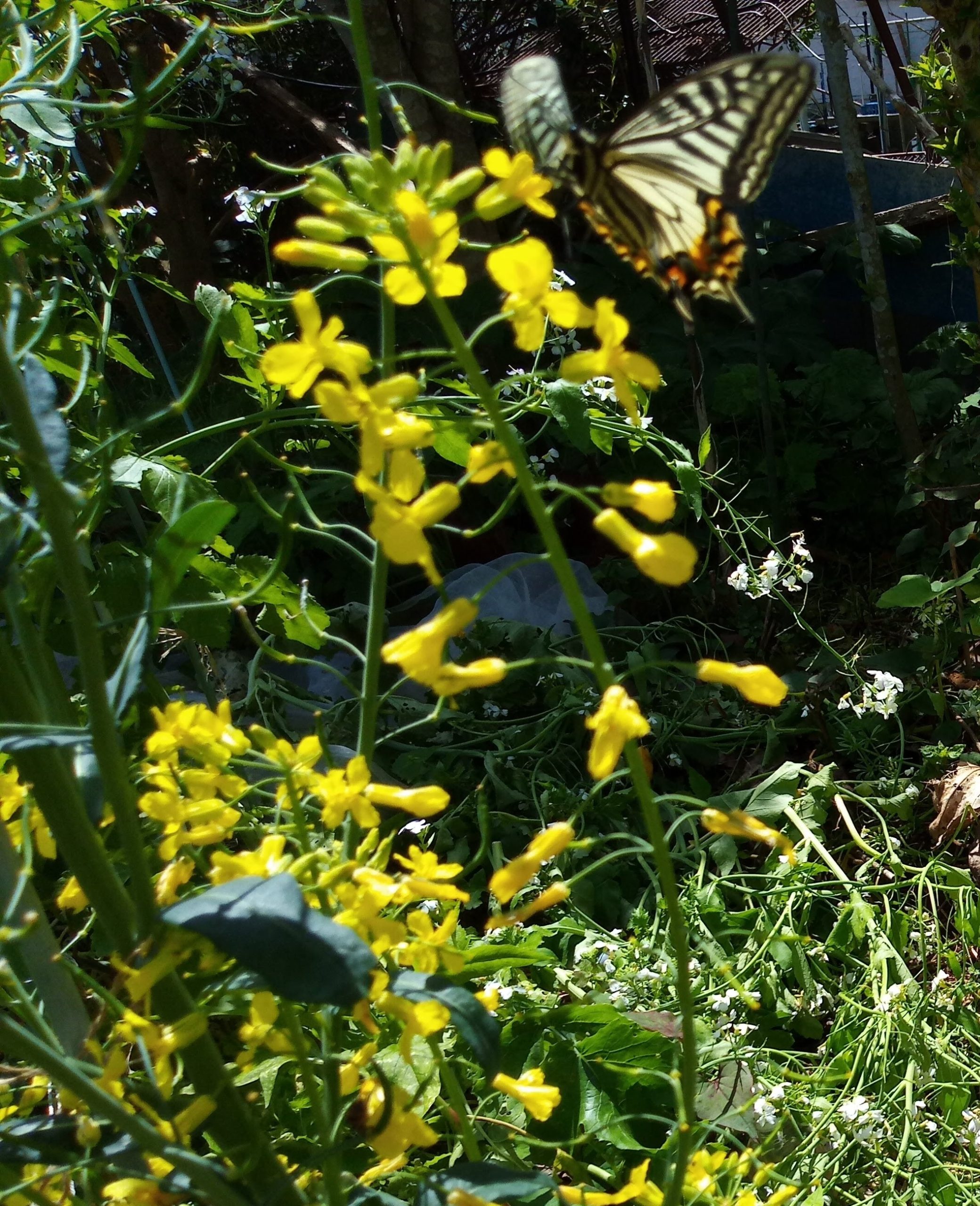 雌: 『あ~、菜の花の蜜はなんて美味しいのかしら!羽のある世界はなんと自由で素敵なのかしら。この間までの動きのトロイ世界はもう二度と戻りたくないものね。』
