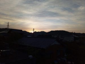 5時19分の写真ですが南東の中層に薄っすら釈がみえますね。日の出から20分で山から太陽が顔を出すか、出さないか、という処まで登って来ます。