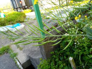 柿の木下の蚕豆を縛って来ました。これの種を蒔いた頃は未だ垂直仕立て栽培を知らなかったから、平面的な思考で筋蒔きとかやっていました。縛るという作業が読んでいても分かっていなかったのですね。色々とやって行き、季節が移ろい、成程なぁ!、とようやく分かる部分がありました。