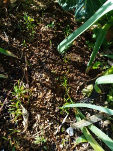 花壇では昨日Wさんから頂いたピンクの花が活着しています。午後には西日でぐったりしていたので、慌ててネットを掛けたのですが、大丈夫そうです。ヒオウギアヤメが勢いよく伸びています。一番下は多分ですが…秋桜の芽です。未だ1㎝位。