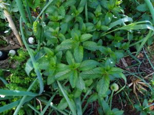 左: ペパーミントが茂っています。これはウォッカにでも浸けてミント酒を作ろうか。チンキにしようか。