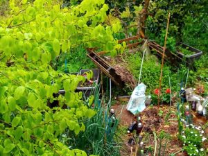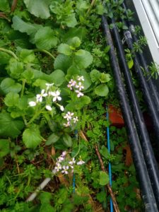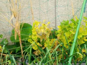 どうやら韮とか麦が病気や害虫忌避に効果的らしいので、直ぐ近くに韮はありますね。反対側に燕麦でも植えましょうか(笑)。行灯になるビニールが数少ないので、花心さんの裏が黒のビニールも使えるかしら?切って両面からテープを張る?其処までするなら別の物…蜂底石とか、腐葉土の袋は大分捨てちゃったよね。