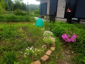 右: 花壇。草がふえた!