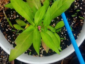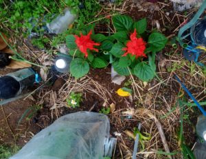 右: ニチニチソウ先生のお子様化と思って育てて来たら、赤まんまでした。此処でも騙された…騙される方がいけないんですね。
