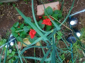 ピーマンを定植して来ました。(写真右)直ぐ脇にノースポールと紫蘇があり、畝先端です酢のでサルビアが近くにあり、南側に韮の列があります。晴れたら、韮も近くに移植して置きましょう。