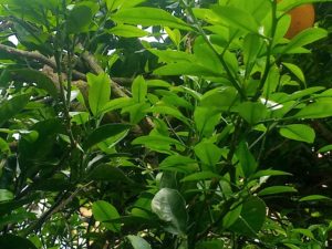 夏蜜柑は花芽を着けずに光合成を仕事とする枝(写真左)と花芽を着けて生殖活動をする枝(写真右)があります。