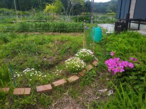 右: 花壇の反対側。これでも草刈りしましたよ~(笑)。