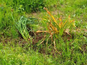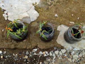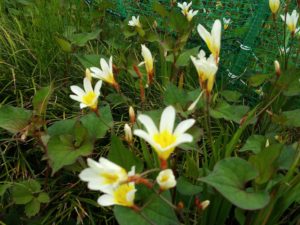 中: ここに植えたのは(写真真ん中)右の花が咲きます。名前はトリトニア。赤い花もあるみたいですよ。