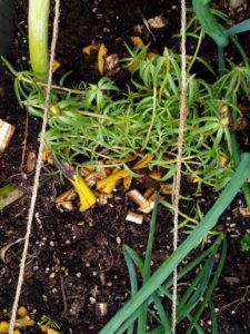 中: お借りした畝にはまたまた南瓜が発芽しています。