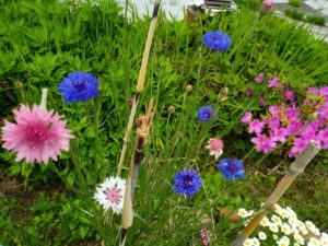 三段目: 矢車草がピーク!?綺麗ですよね。買った苗より綺麗…自己満足(笑)。