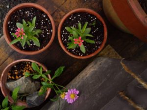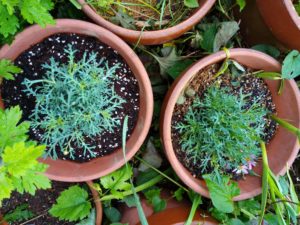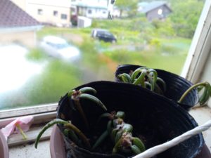 左: ローズマリー、タイム、菊の挿し穂。昨日は激しい雨が予測されたので、家の中に留まりました。これで一月様子を見ます。