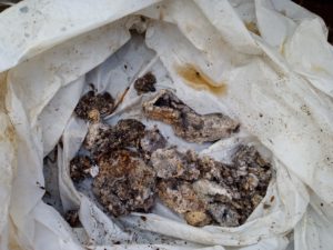 折角掘り返したので、埋める前にパイプ掃除のワイアで一度やって置きます。流しの受けとその下のパイプはもう少し先に延ばしますが、絶対に交換致します。アマゾンで注文しました。予定していた5mとか10mの物が必要で無くて良かった~。写真はパイプ内から出て来た脂の塊で袋はゆあぱーくさんの5円の袋です。さぁ、今後、油ものの処理をどうするか、考えます。それか、時々定期的に排水パイプの掃除をするか、ですね。昔、パイプクリーニング業者さんが言っていました。一月に一度でも好いから流しの半分位にたっぷり溜めたお湯かお水を流すのが理想的だ、と言っていました。こういう事なんですね。