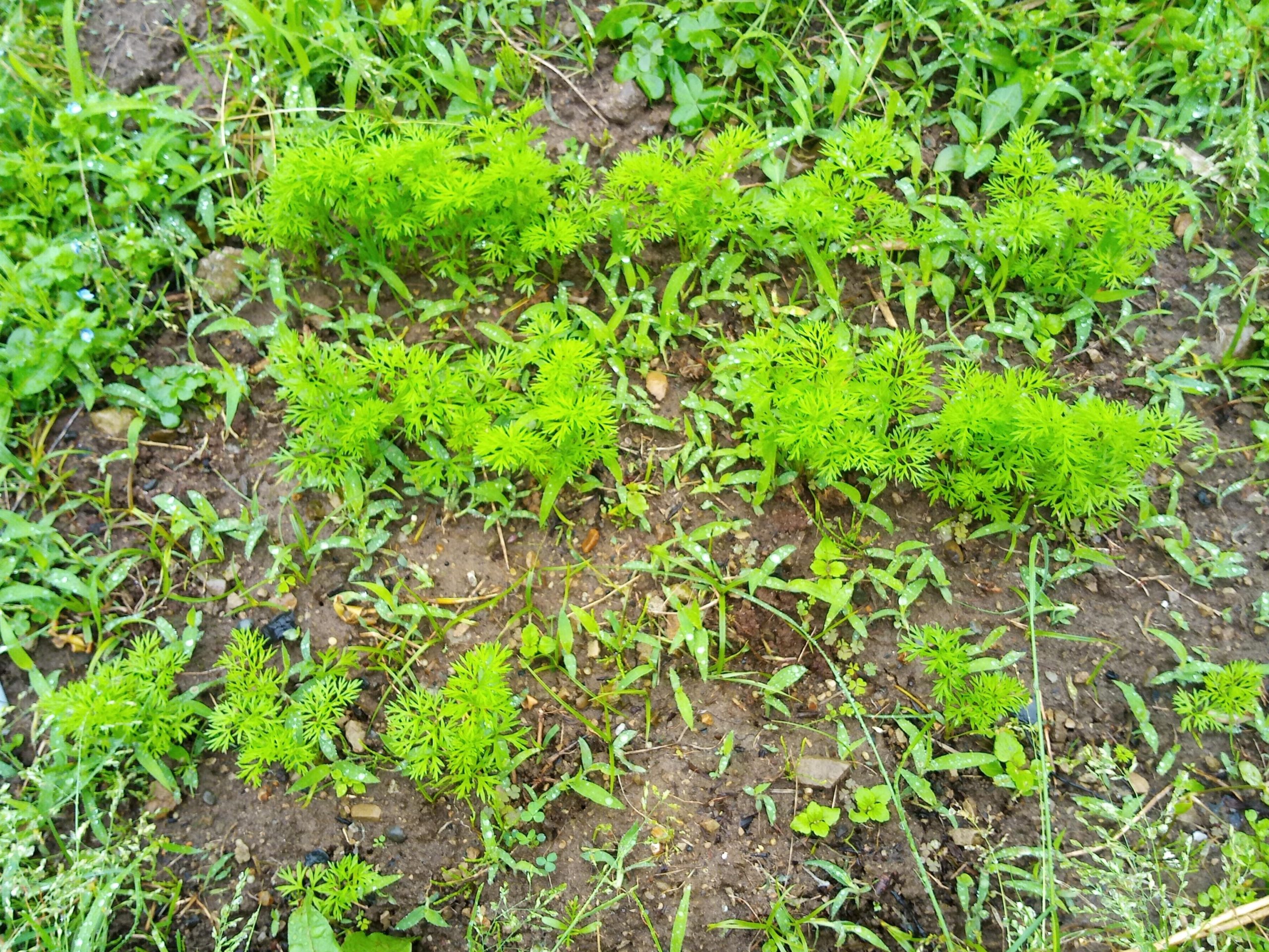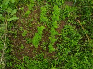 草じゃありませんよ~!3月蒔きの人参の背丈がグングン伸びています。