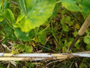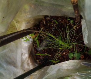 竹チップが玉葱、蚕豆らしい。だったら、支柱に使って脆くなった篠竹を小さく切って置いて上げるのもアリじゃないでしょうか。それを米糠発酵させてもいいかなぁ。これは面白いですね。